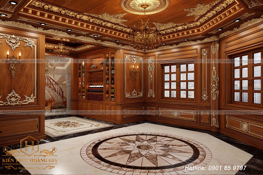 Mẫu phòng khách được Kiến Trúc Hoàng Gia thiết kế và thi công cho công trình Biệt Thự cỡ lớn quy mô 4 tầng, mẫu nội thất đi cùng phong cách cổ điển của ngôi nhà. Nội thất là một lĩnh vực được ban lãnh đạo quan tâm ngay từ những ngày đầu bên cạnh sở trường về Dinh Thự- Biệt Thự. Các bạn chiêm ngưỡng mẫu thiết kế vô cùng sang trọng đi kèm nội thất gỗ.