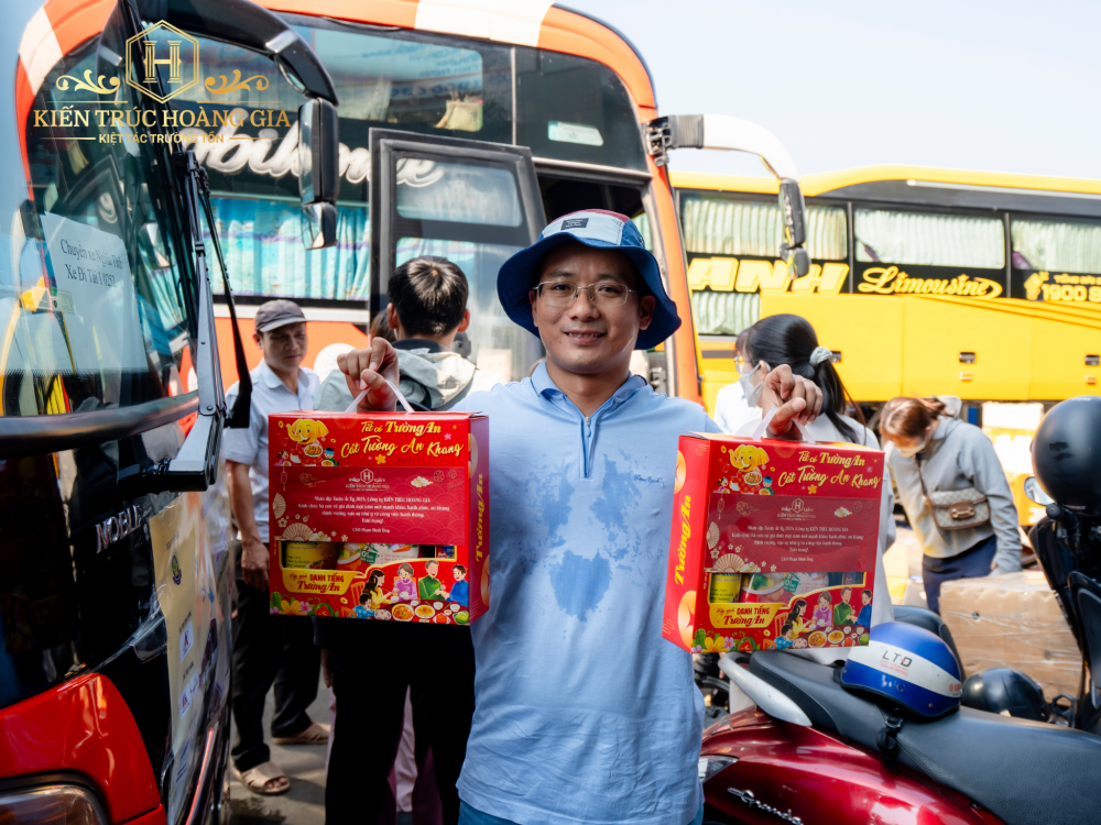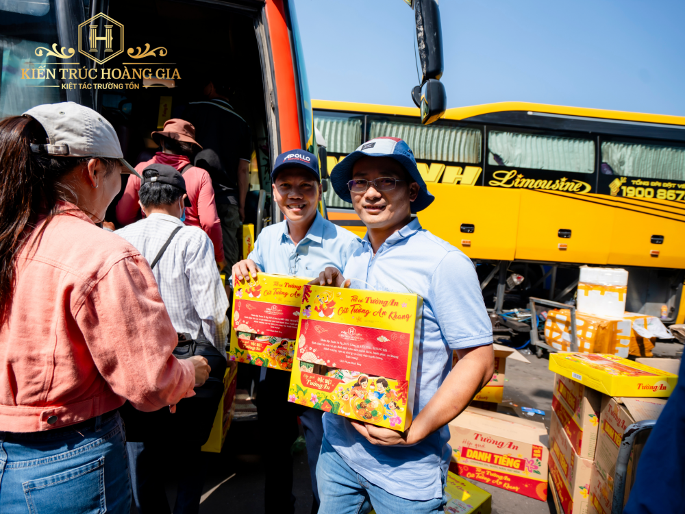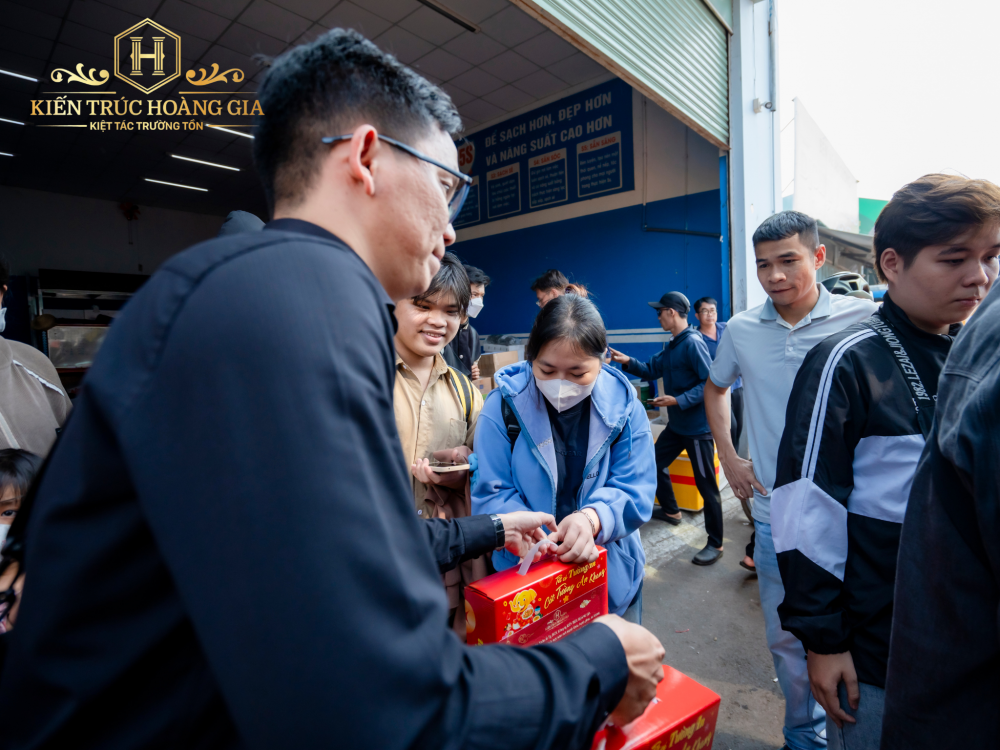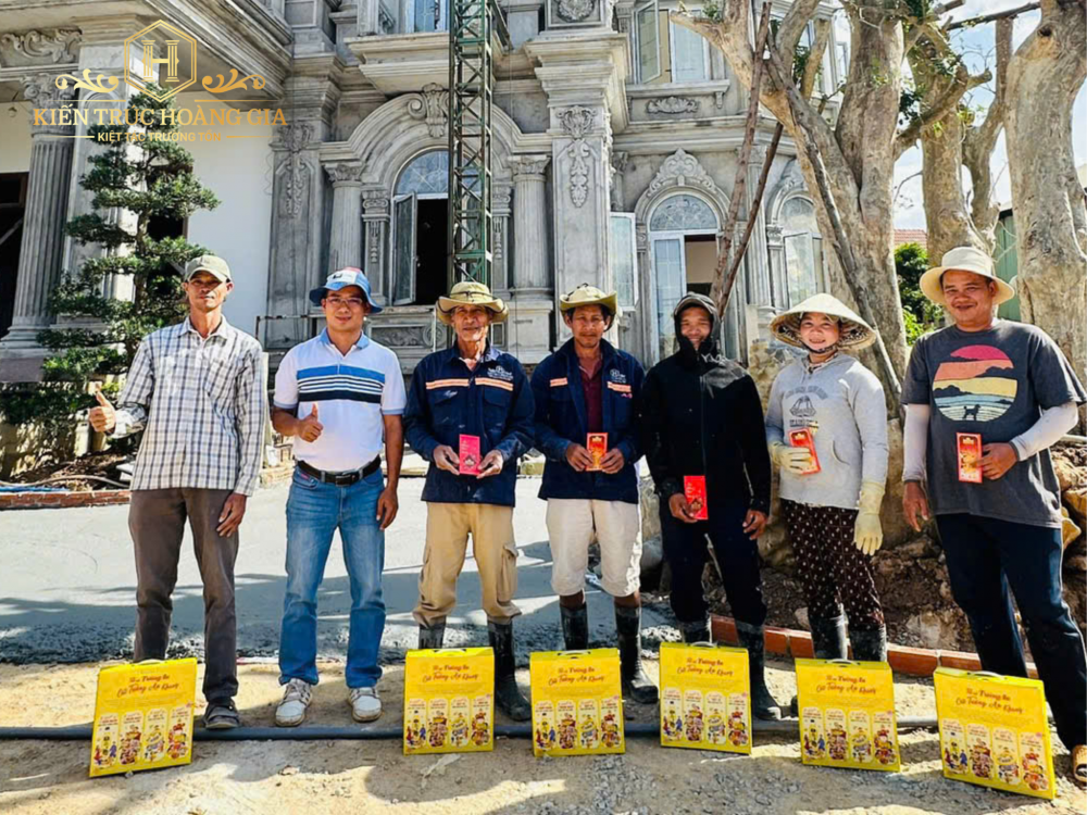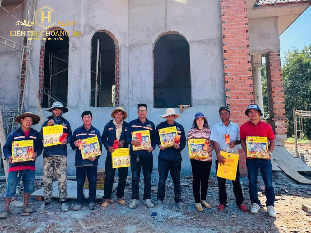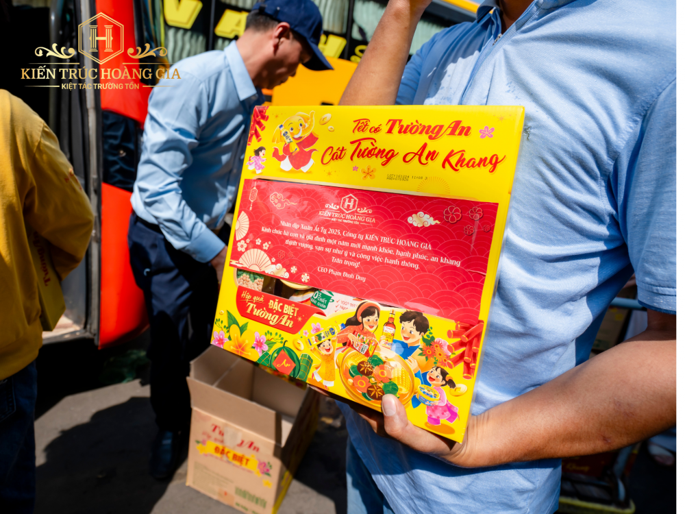 Không chỉ dừng lại ở đó, Công ty Kiến trúc Hoàng Gia còn gửi tặng nhiều phần quà đến đội ngũ thi công công trình, những người đã không ngừng nỗ lực để hoàn thành các dự án lớn nhỏ của Công ty, góp phần xây dựng thương hiệu Kiến Trúc Hoàng Gia.
