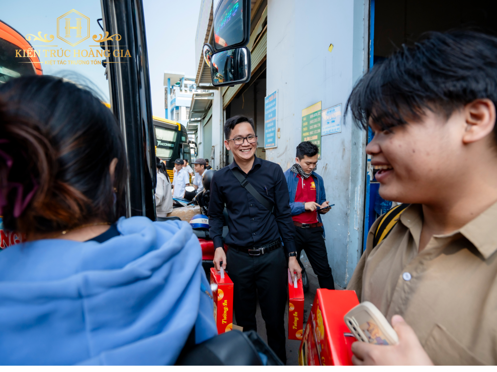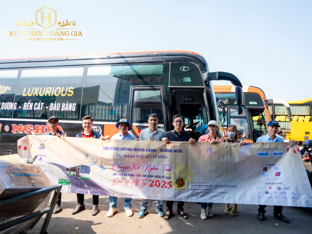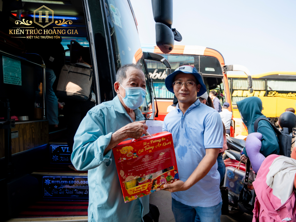 Trong không khí rộn ràng của mùa xuân mới, Công ty Kiến Trúc Hoàng Gia đã chung tay cùng Hội đồng hương huyện Nghĩa Hành, tỉnh Quảng Ngãi trong một chương trình thiện nguyện đầy ý nghĩa. Kiến Trúc Hoàng Gia mang đến gần 90 phần quà gửi tặng bà con có hoàn cảnh khó khăn, đặc biệt là cô chú lớn tuổi và các bạn sinh viên, tại bến xe An Sương khi đang trên đường về quê đón Tết Nguyên Đán ất tỵ 2025.